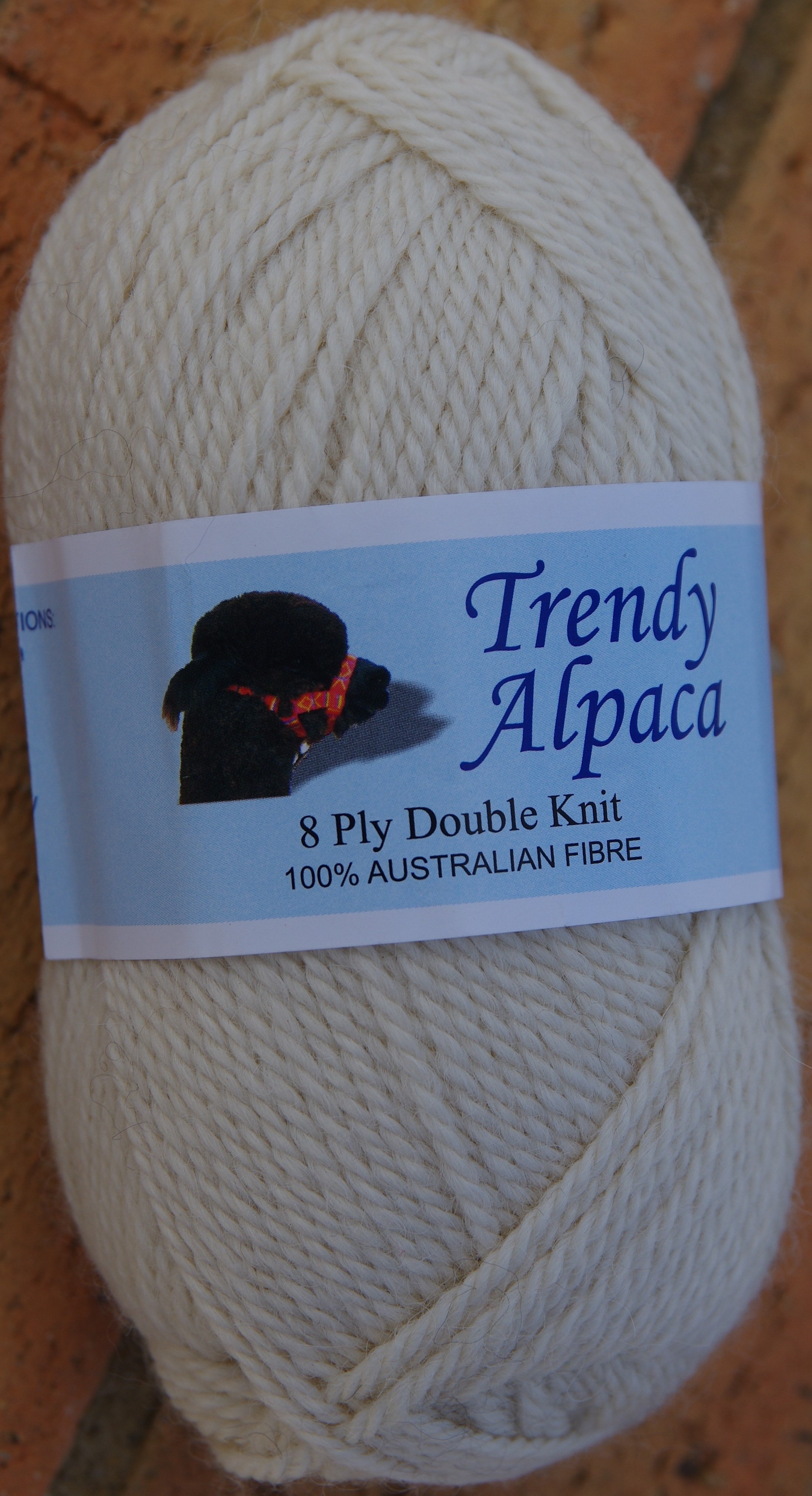 Our yarn is 8 ply double knit - 80% alpaca & 20% organic merino. We have four natural colours - cream, fawn, brown and black. $9.90 inc GST per ball. Postage additional.